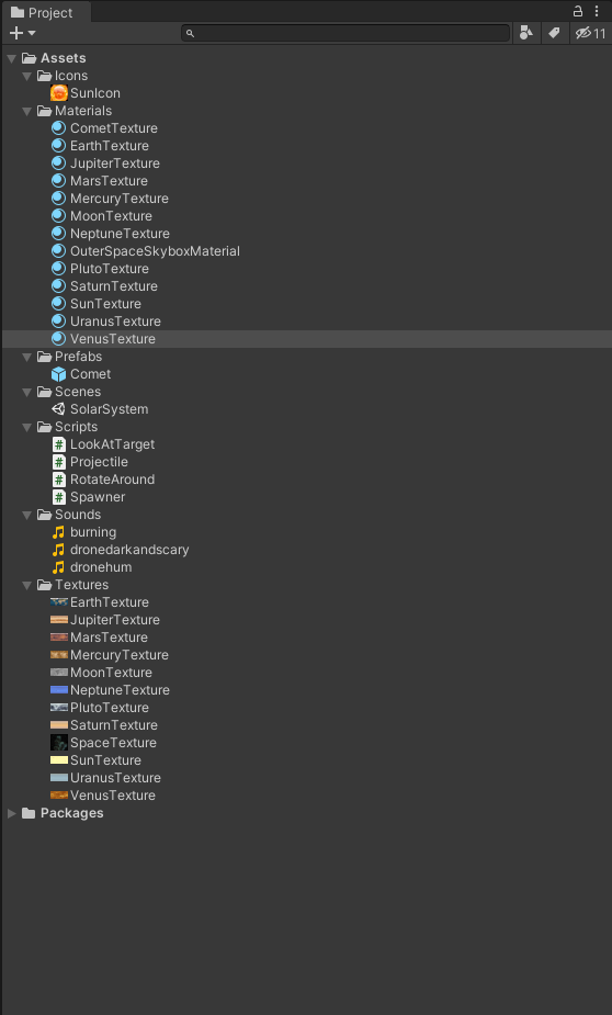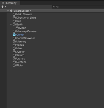 This is a simulation of Solar System I created. The following components (planets) are included in the game: